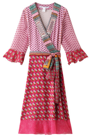DIANE von FURSTENBERG カラーブロックラップワンピース ピンク