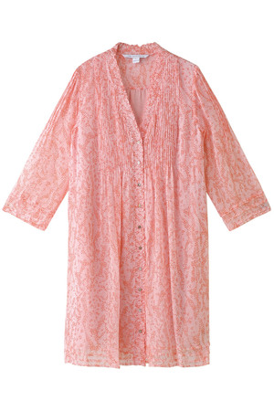 細やかなプリント柄が女性らしさをアップ 春夏らしいさわやかなカラーリングが目を引く、フェミニンなロングシャツが入荷! こちらは、ソフトでしっとりとしたシルク100%素材を使用した、見た目にもやさしい印象を与えるアイテム。細かめのプリーツやプリント柄が、上品さを演出して女性らしい。生地はほどよく透け感があるから、今季の着回しに重宝する逸品!
